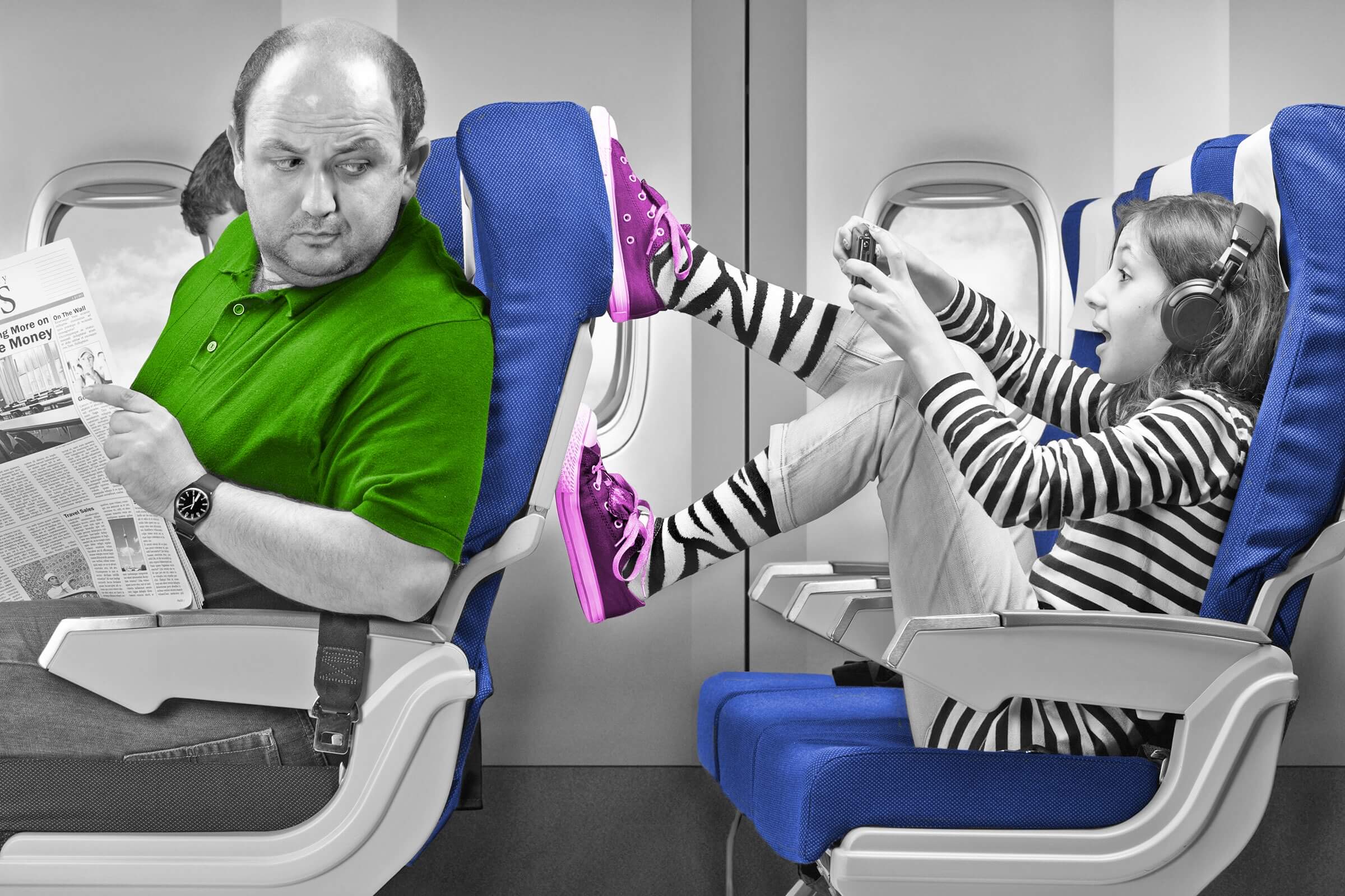 Nobody wants to be seated near a screaming baby on an airplane, but nobody wants the baby to stop screaming more than their parents do. If you’re a child-free passenger, stop to consider whether a parent has control over something before airing your concerns. Nobody can reason with an infant, especially when experiencing painful changes in cabin pressure for the first time, but parents do have an obligation to intervene if their kindergartener is kicking the back of your seat. Just be kind when you ask. (One etiquette expert suggests that kids are less likely to kick in their stocking feet.)