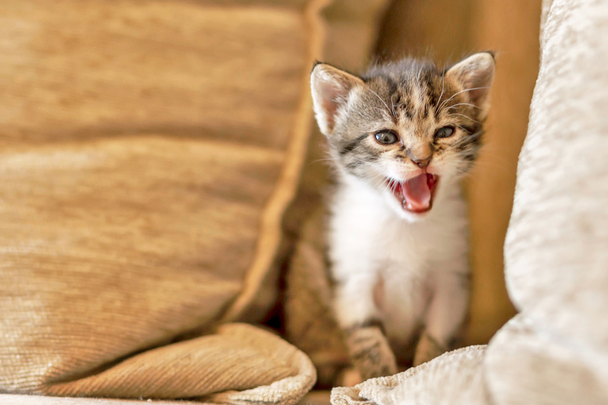 Different meows serve different purposes. For example, a short, high-pitched “meow” may be a simple greeting, while a longer, more urgent “mrroooow” may signal hunger or danger. And domestic cats aren’t the only species that use meowing to communicate: Larger cats such as snow leopards, cheetahs, cougars, and even lion cubs also meow occasionally, mostly to locate each other or, in the case of young cats, to request food or affection.