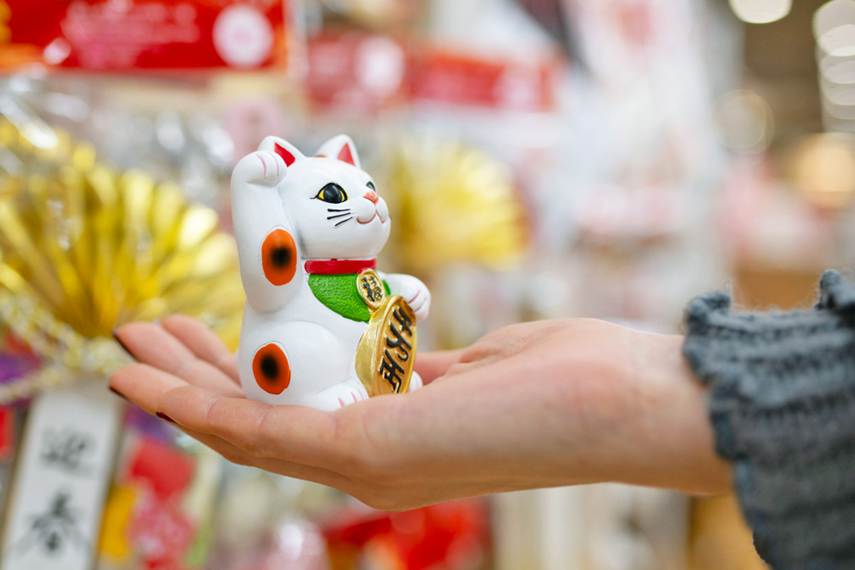 There are various origin stories, but one popular legend hails from Tokyo’s Gōtokuji Temple during the Edo period (1603 to 1868). According to temple historians, a feudal lord was saved from being struck by lightning by a cat named Tama, who beckoned him into the safety of the temple just in time. In gratitude, the lord made the cat a temple patron. Today, thousands of maneki-neko statues are displayed in Tama’s honor.