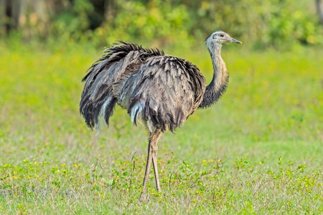 The greater rhea is South America’s largest bird, standing up to 5 feet tall and weighing between 33 and 66 pounds. These birds, which are related to ostriches and emus, roam the grasslands and pampas of Argentina, Bolivia, Brazil, Paraguay, and Uruguay. They’re completely flightless, using their long, powerful legs to outrun predators such as cougars and jaguars.