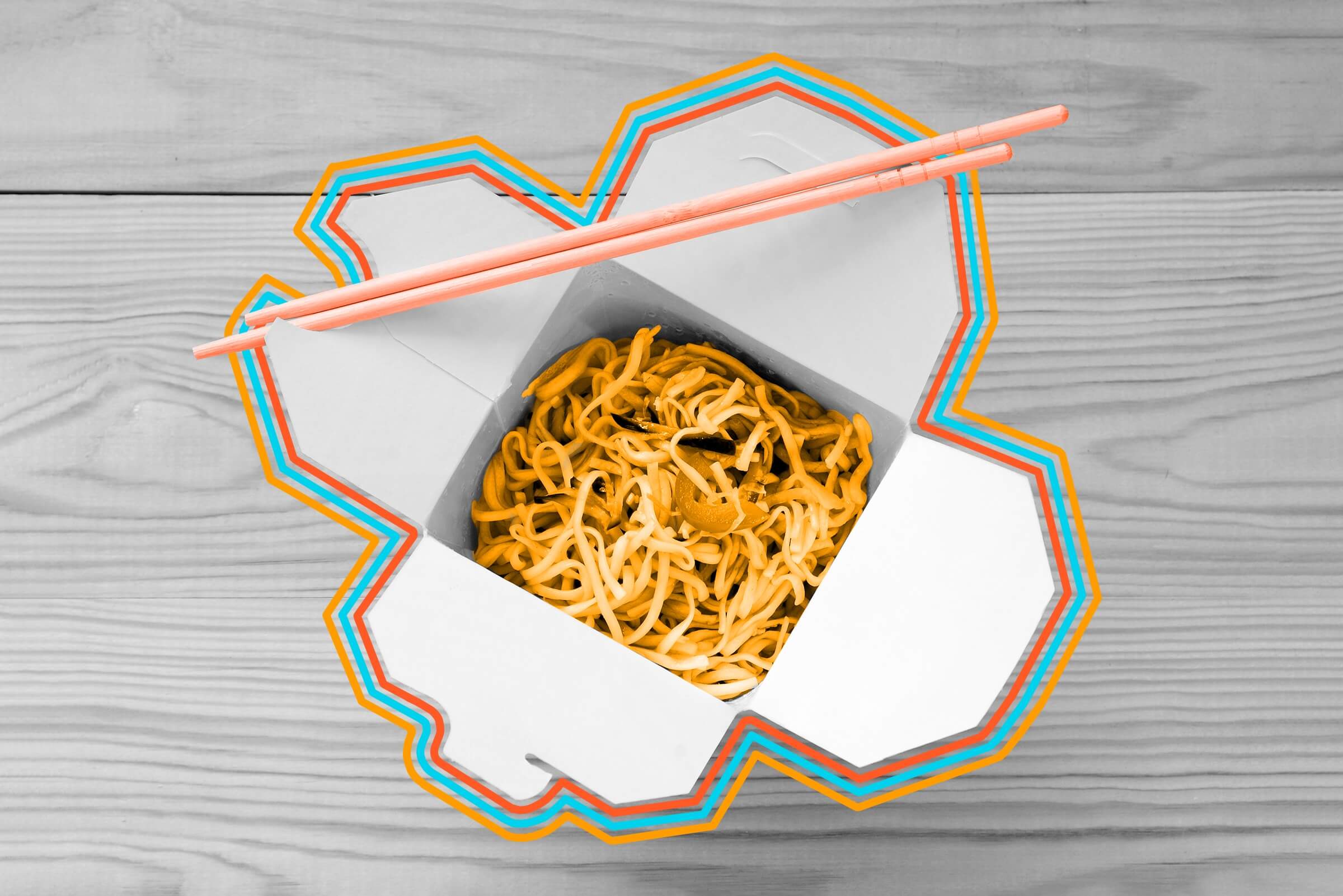 As Americans began taking more advantage of suburban living and consumer conveniences after World War II, Chinese food delivery became an increasingly popular dinner option, with Wilcox’s containers of leftovers soon lining refrigerator shelves. During the 1970s, a graphic designer at Bloomer Brothers’ successor, the Riegel Paper Corporation, embellished the boxes to include a pagoda and the words “Thank You” and “Enjoy” — all in red, a color that represents luck in China. The Riegel Paper Corporation evolved into Fold-Pak, the world’s top producer of takeout containers, which assembles millions of cartons per year. Composed of solid-bleached-sulfate paperboard and boasting an interior polycoating, each food carrier expands into a handy plate if you remove the wire handle.
