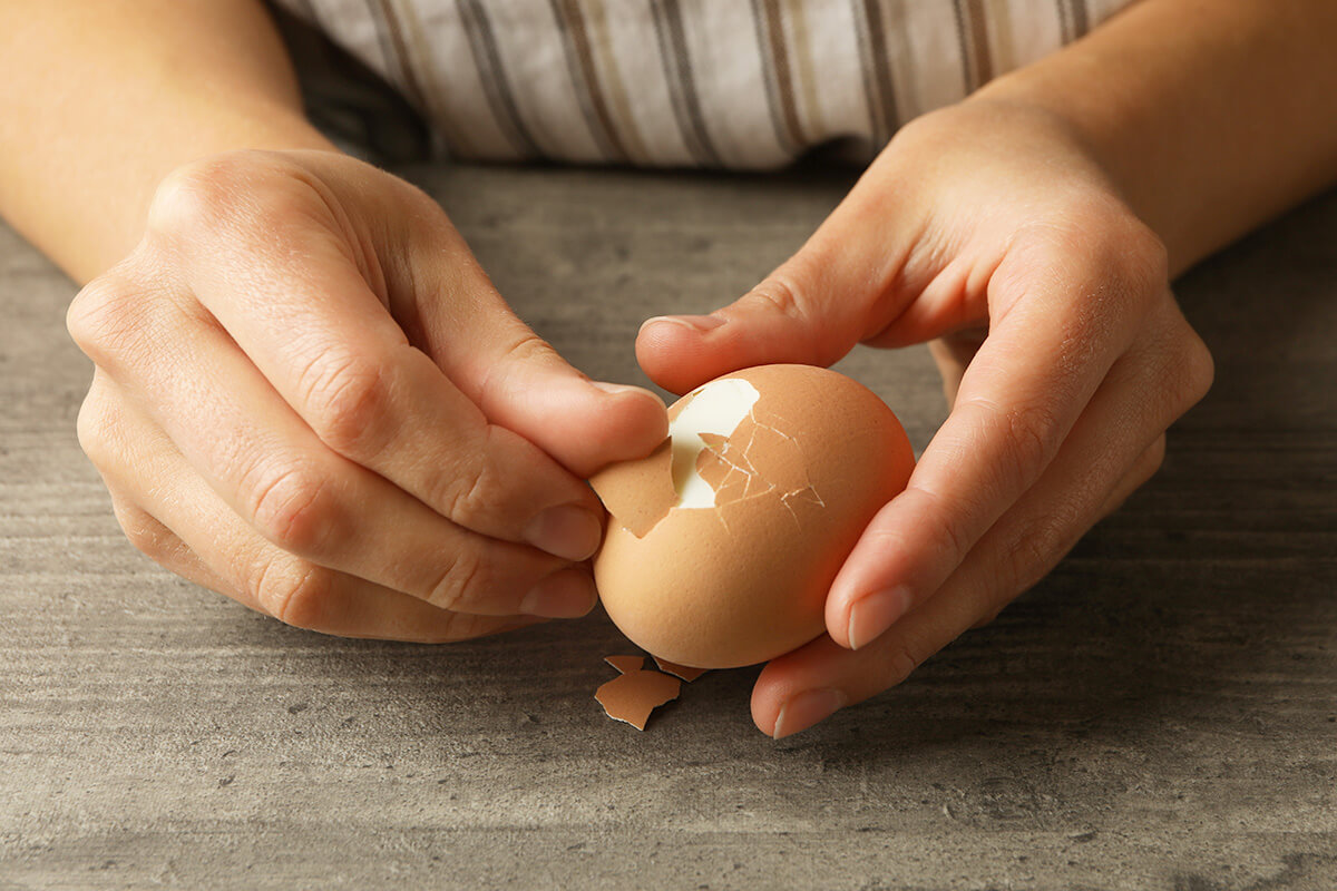 If you’ve ever struggled to peel a hard-boiled egg, the egg’s age may be to blame. Fresh eggs have a lower pH level and a tightly bonded membrane, making the shell cling stubbornly to the cooked white. As eggs grow older, the pH level of the white increases and the membrane becomes less adhesive, making older eggs easier to peel after boiling. For the easiest peeling experience, eggs should be a week or two old (close to their expiration date) and plunged into ice water after boiling.