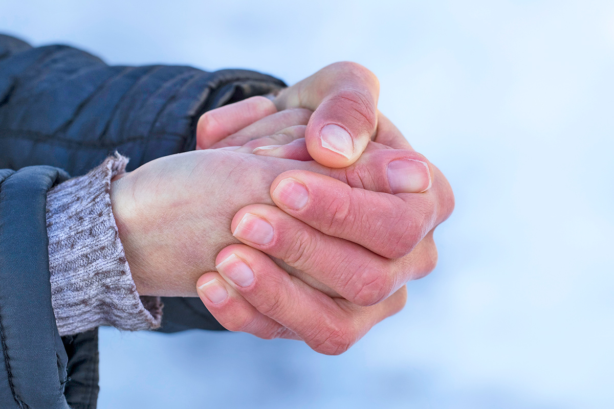 To stay as warm and safe as possible, whether it’s cold or just wet and windy outside, it’s best to dress in layers that balance insulation and ventilation and to keep your head, hands, and feet covered. On the days you happen to forget your gloves at home, take comfort in the fact that, luckily, your body has a few surprising ways to help pick up the slack.